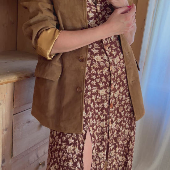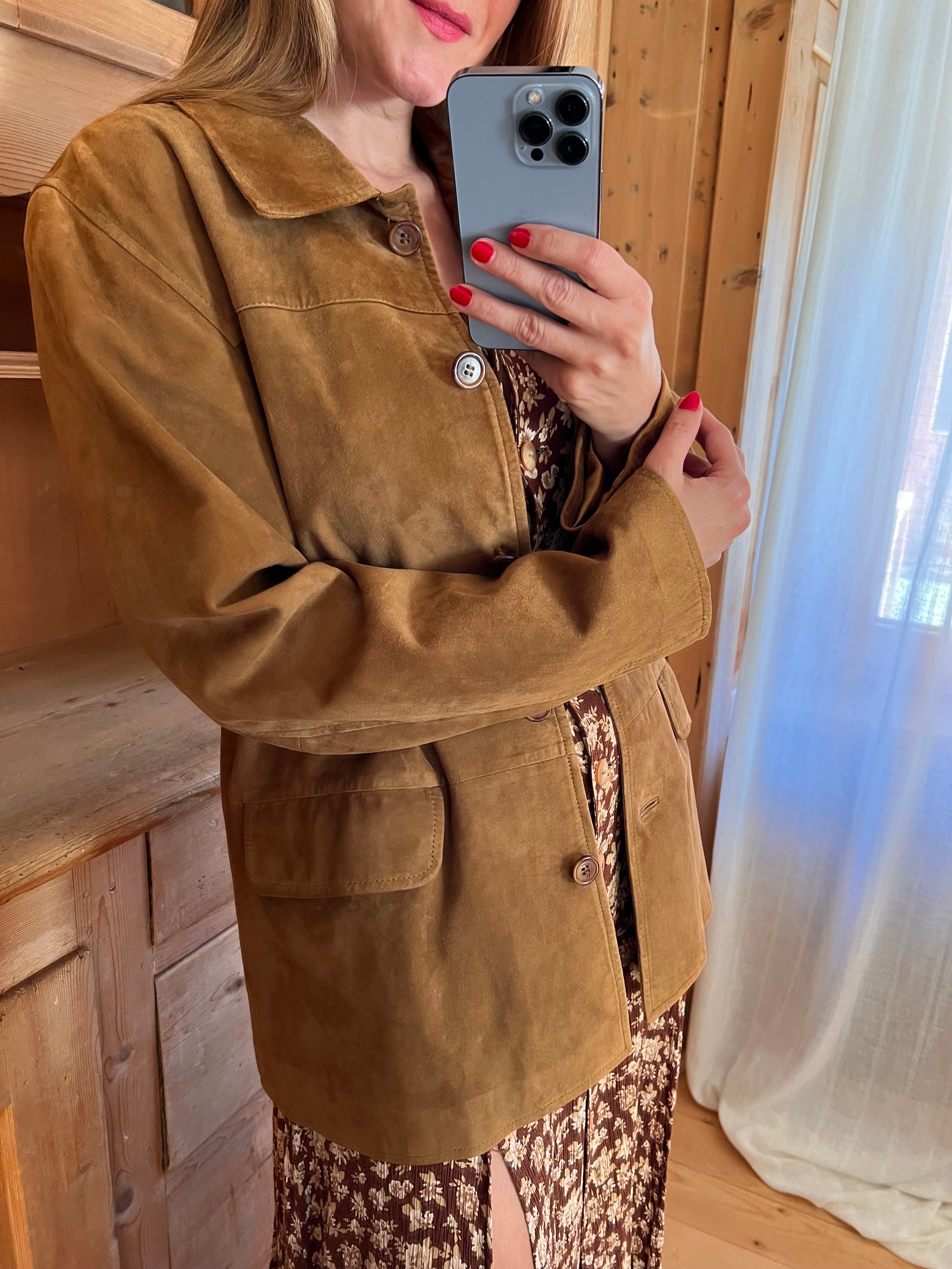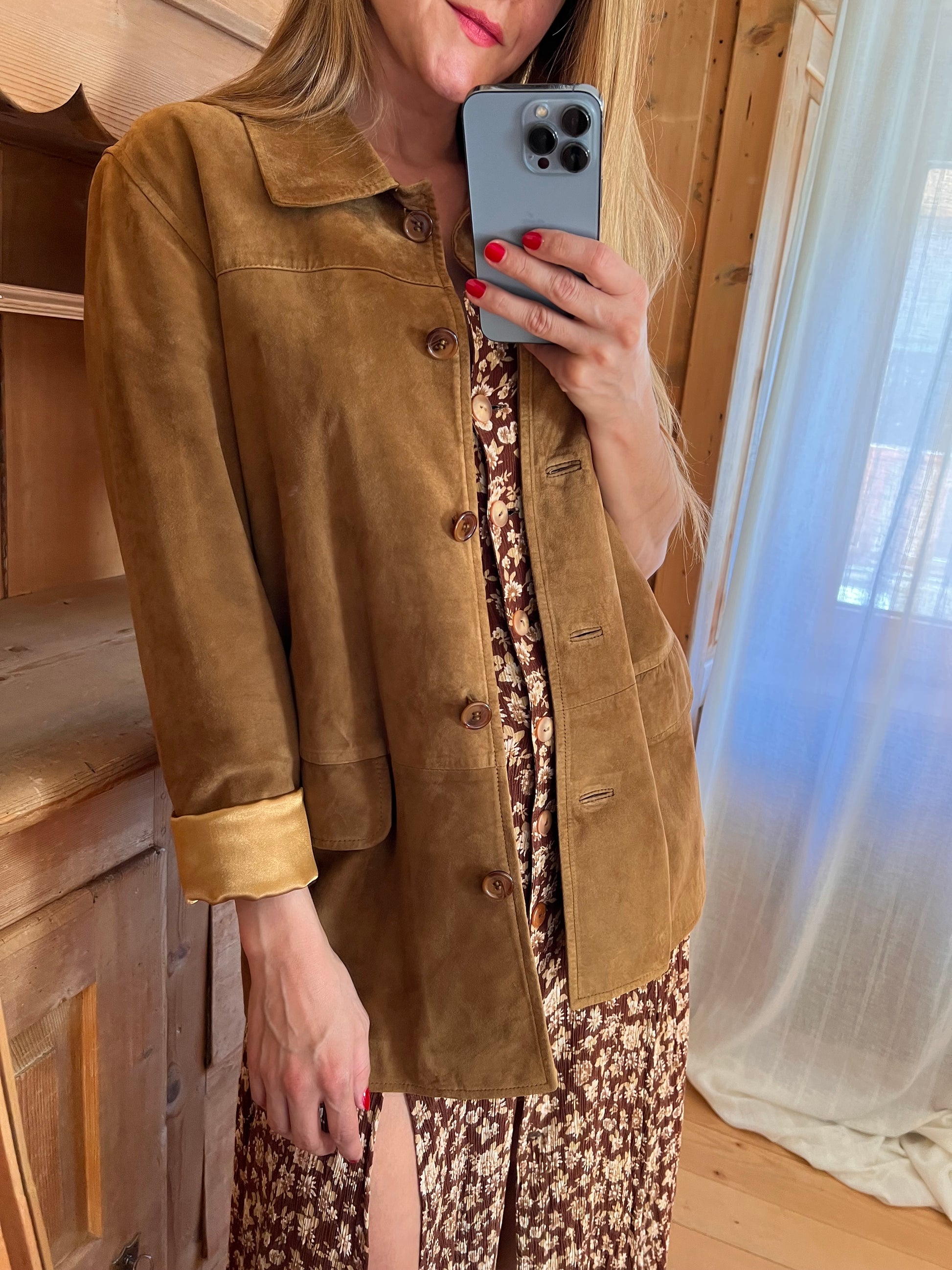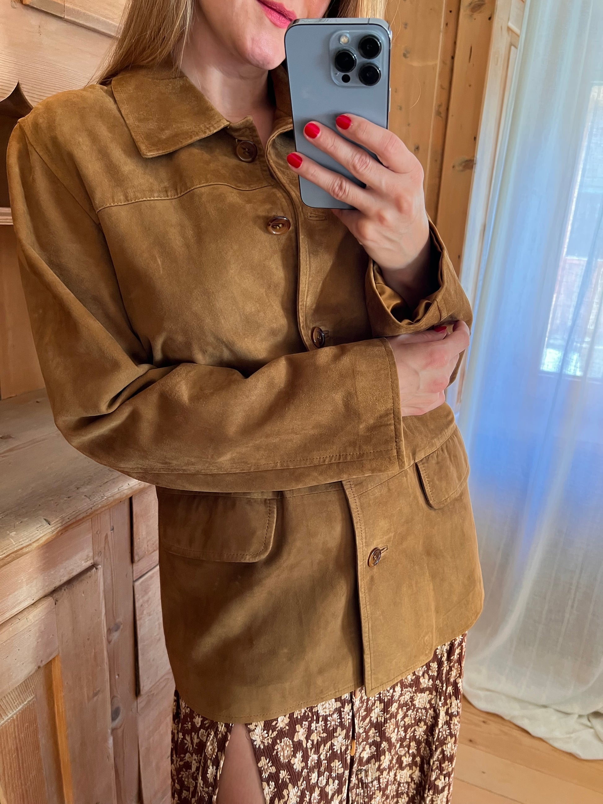 Classic 90s soft suede light jacket. Features two pockets, it's fully lined and it doesn't have shoulder pads.