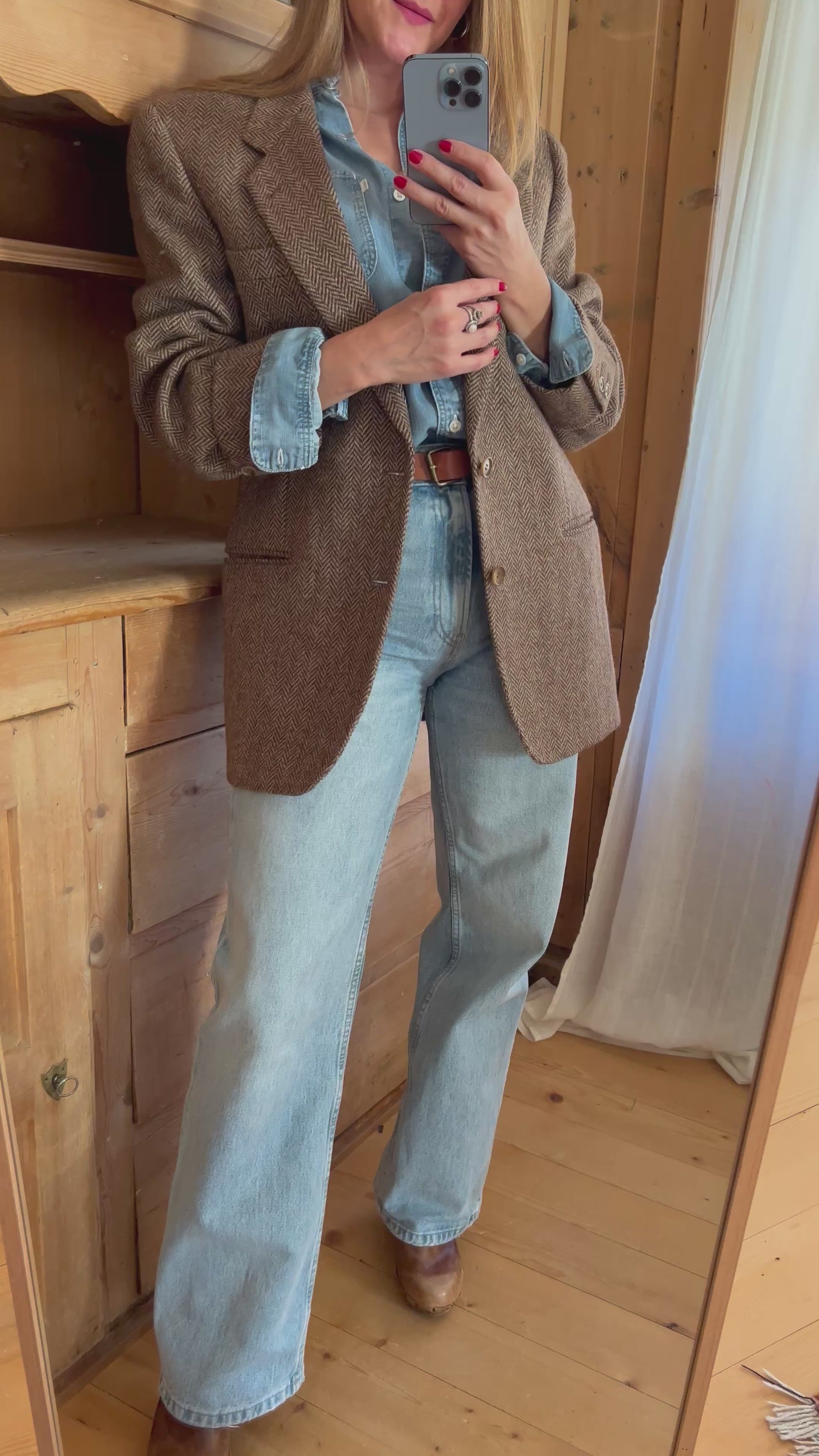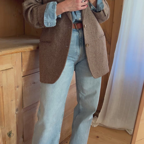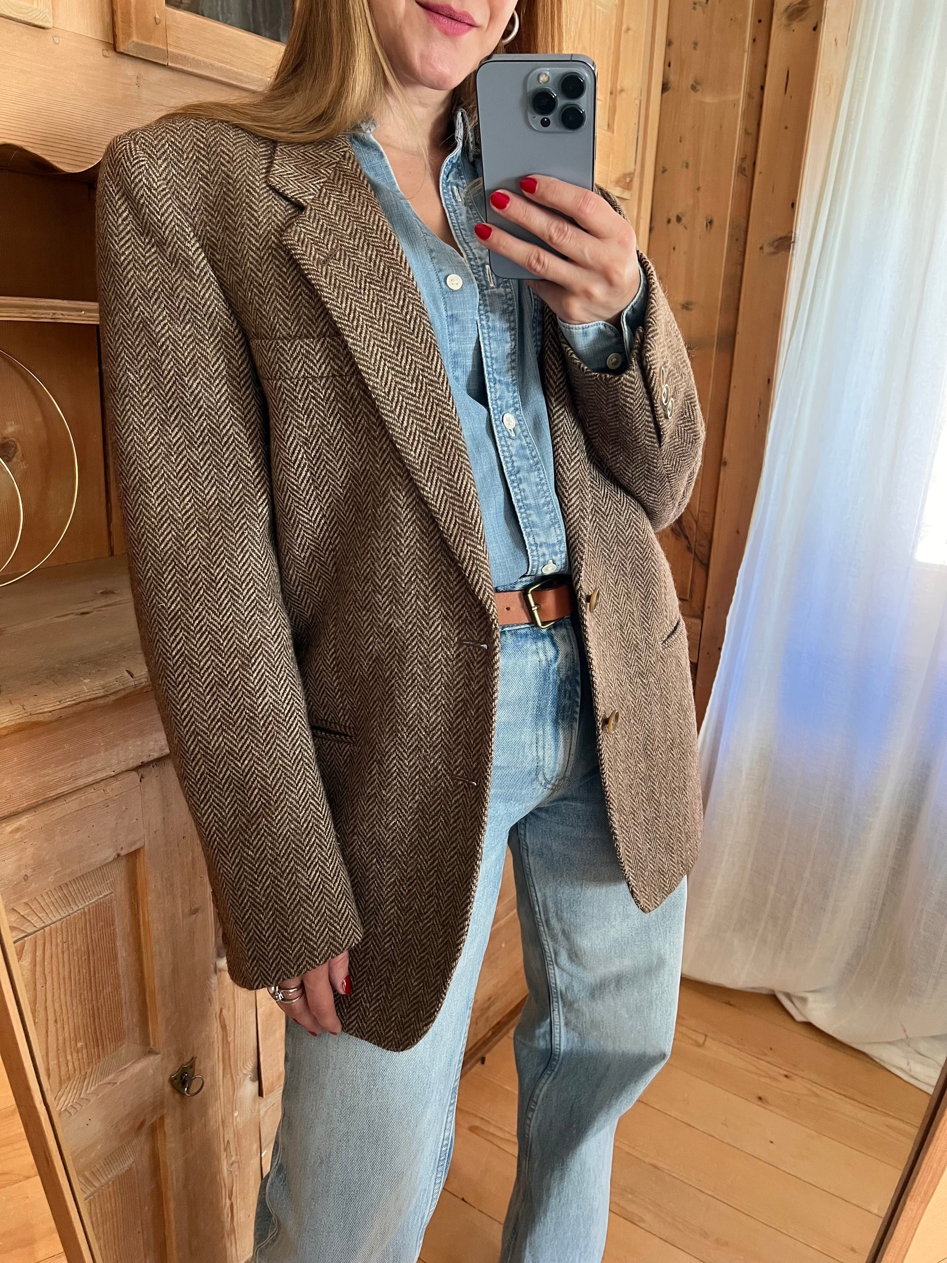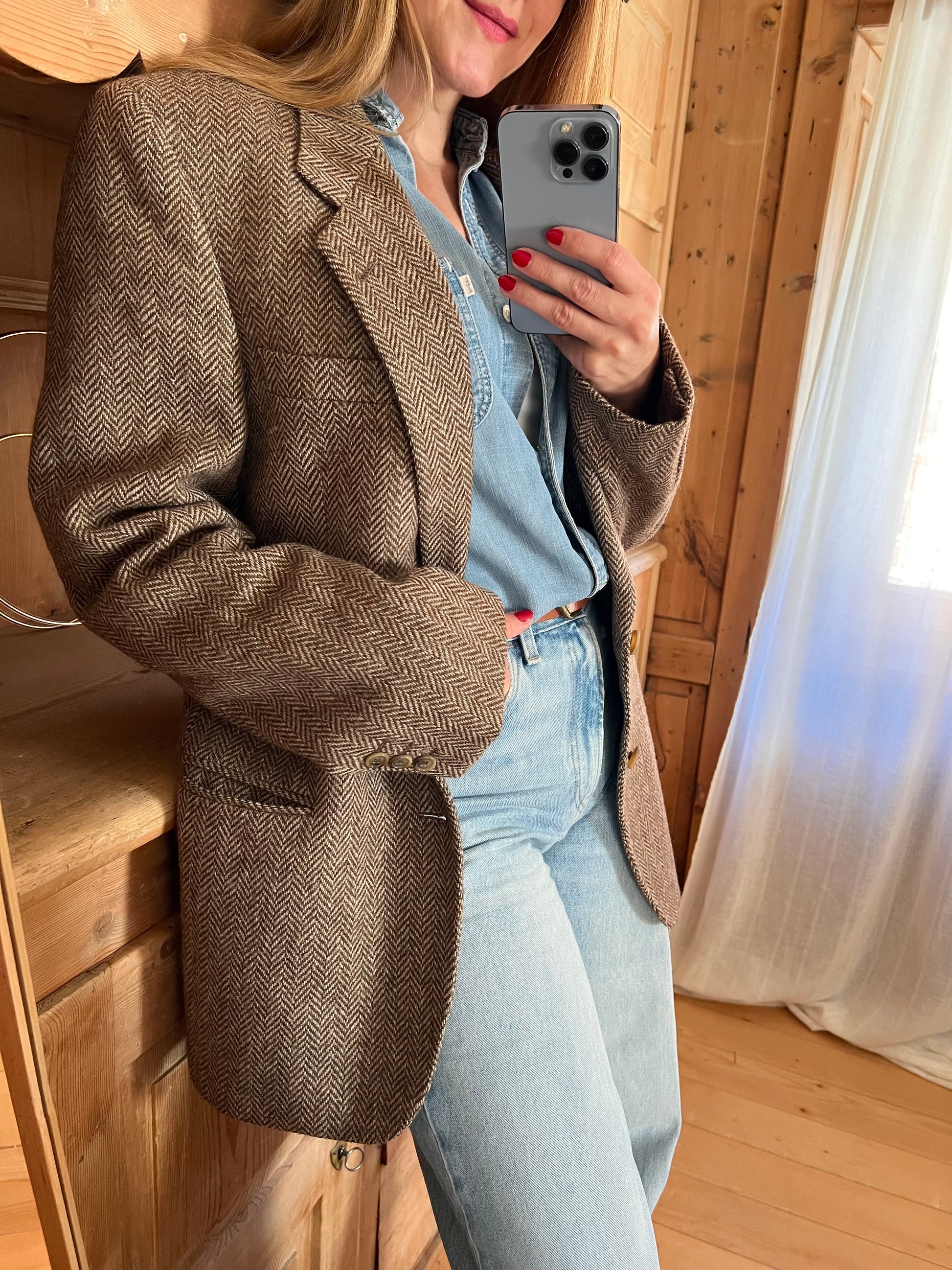 Vintage wool blazer. In gorgeous earthy palette. Features subtle shoulder pads and two front pockets.