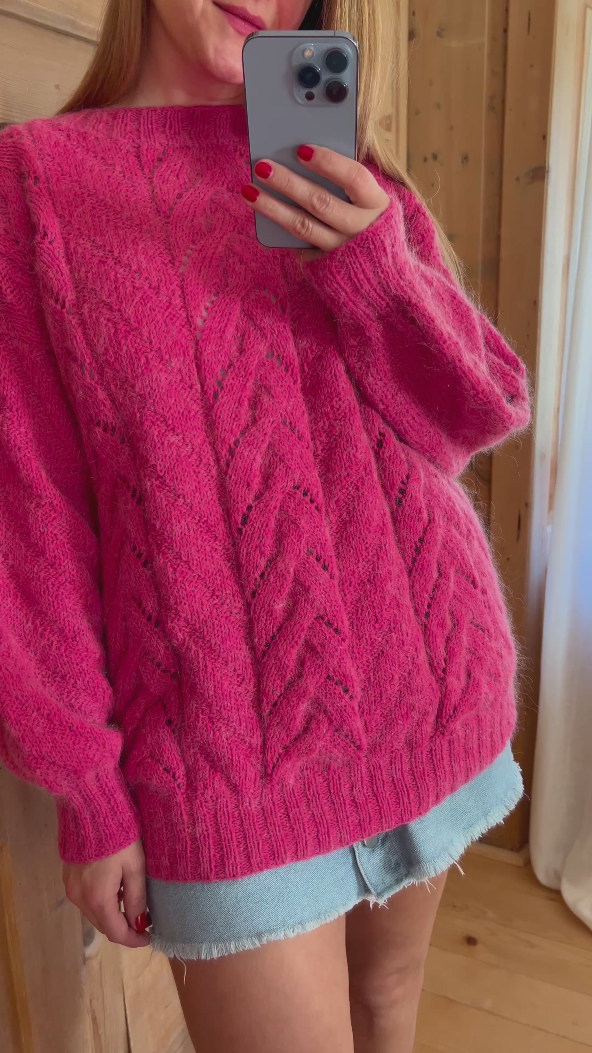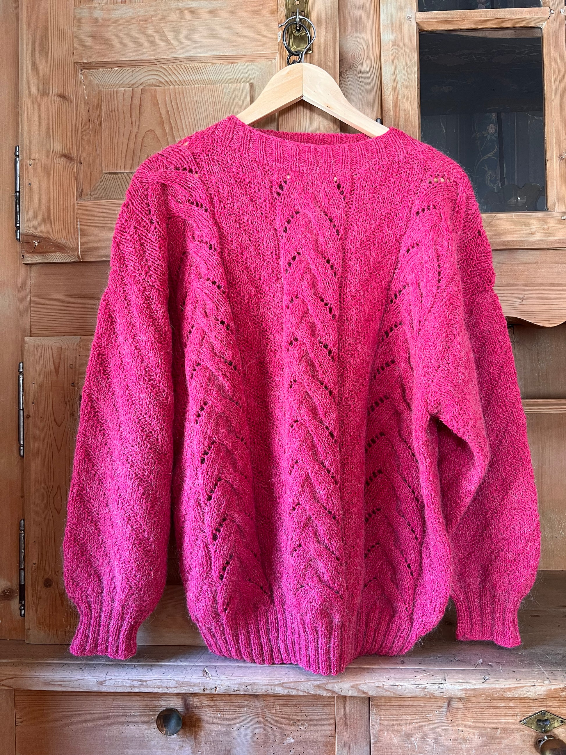 Soft chunky hand-knitted vivid pink jumper.