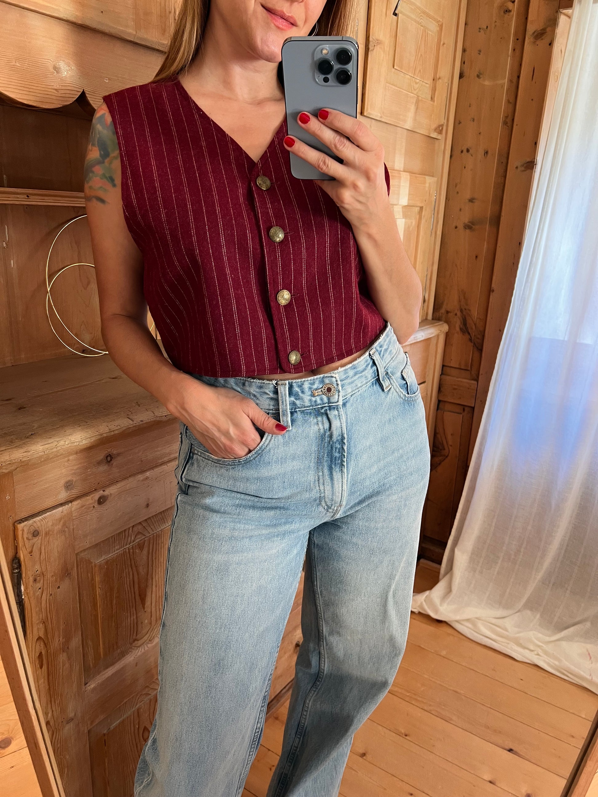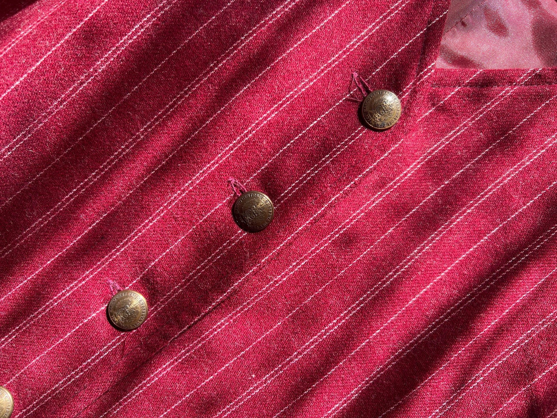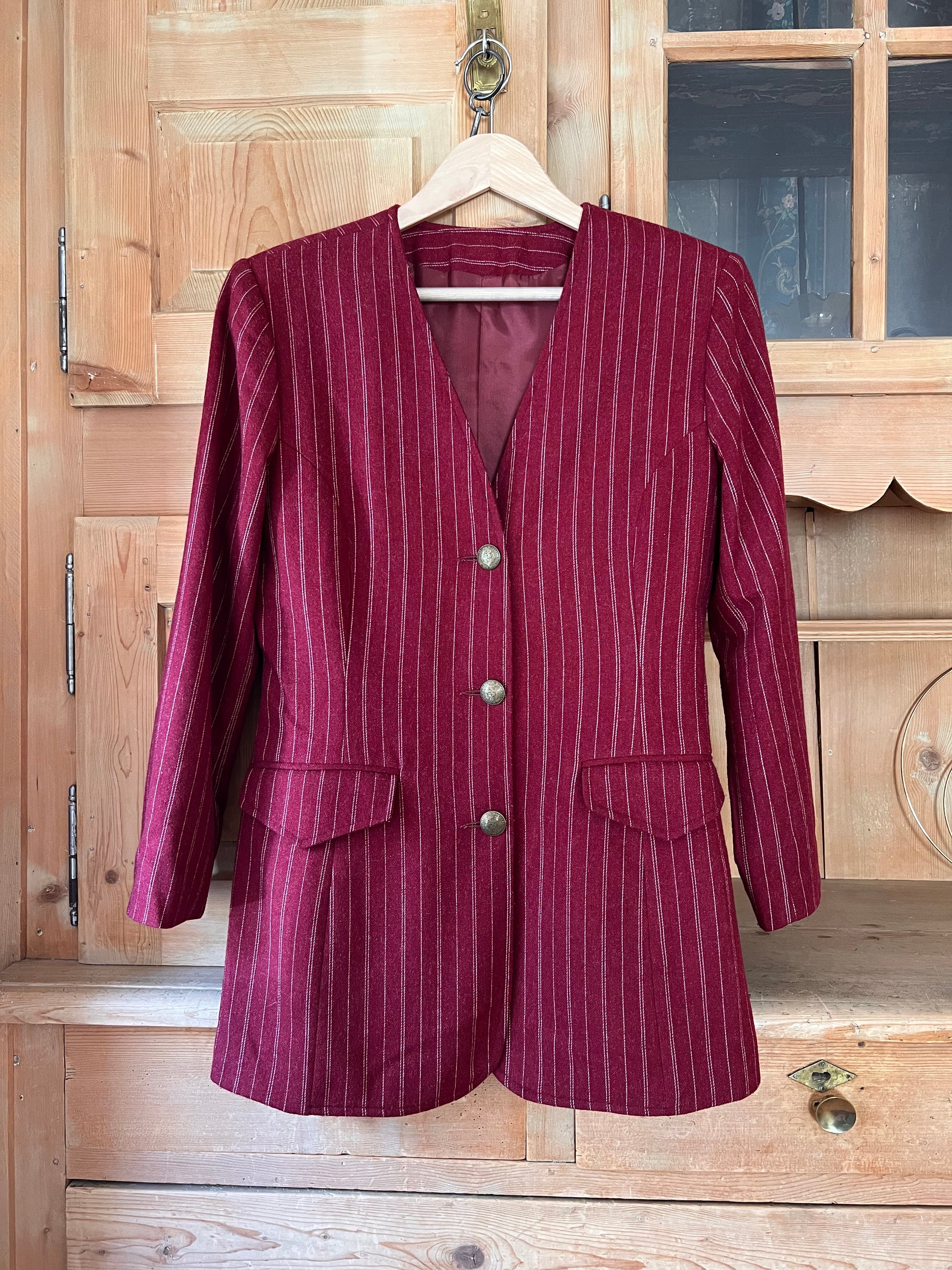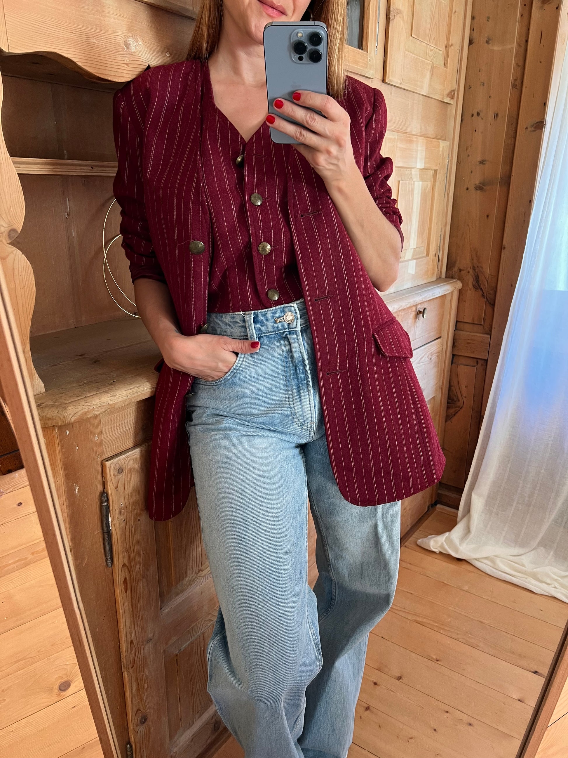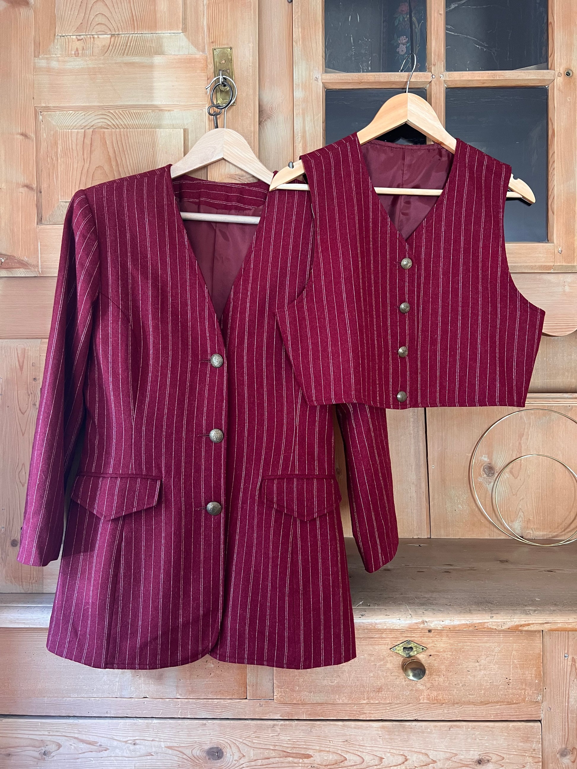 Stunning two piece blazer and waistcoat set. Timeless silhouette in beautiful burgundy.