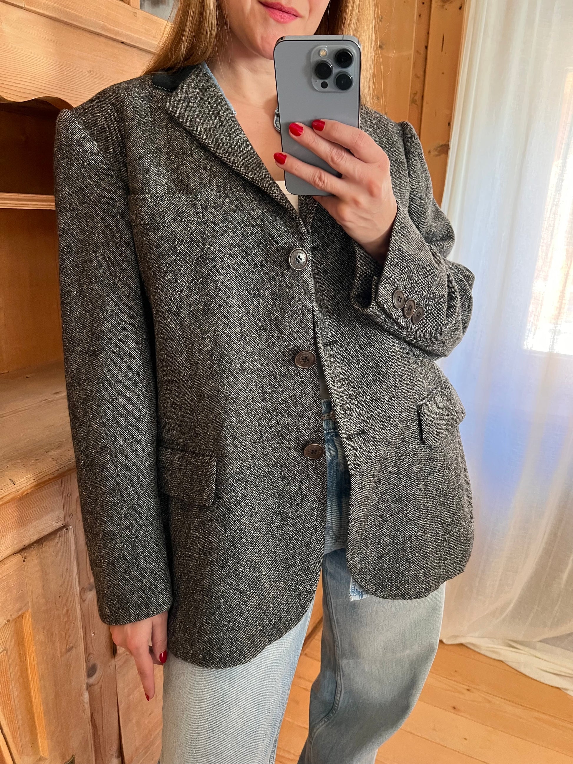 Beautiful Burberry blazer. Features two front pockets, two slits at the back and plush collar detail. Timeless piece and great craftsmanship.
