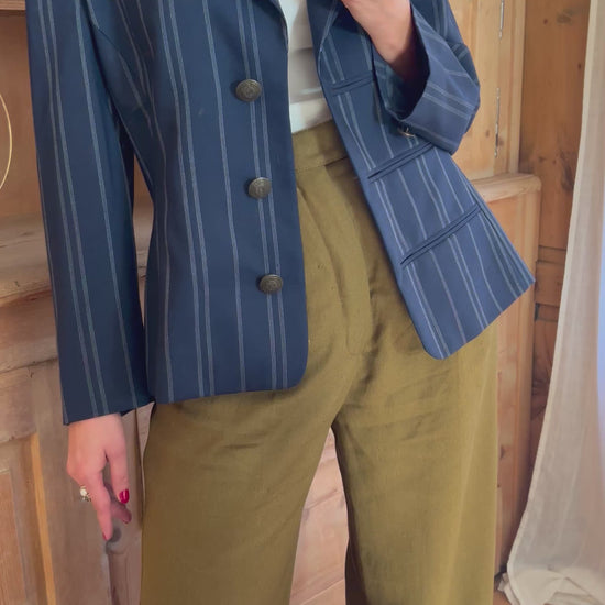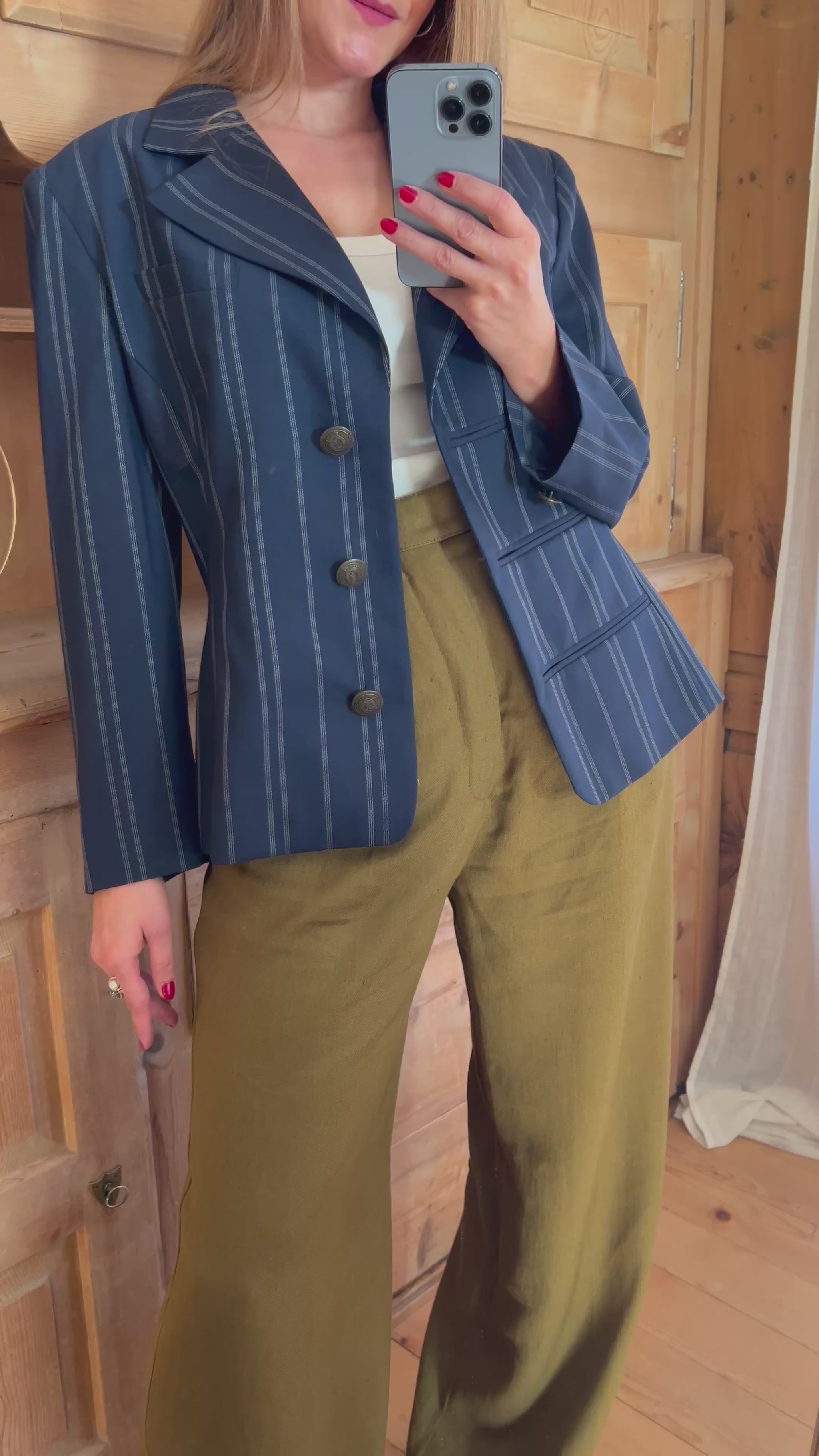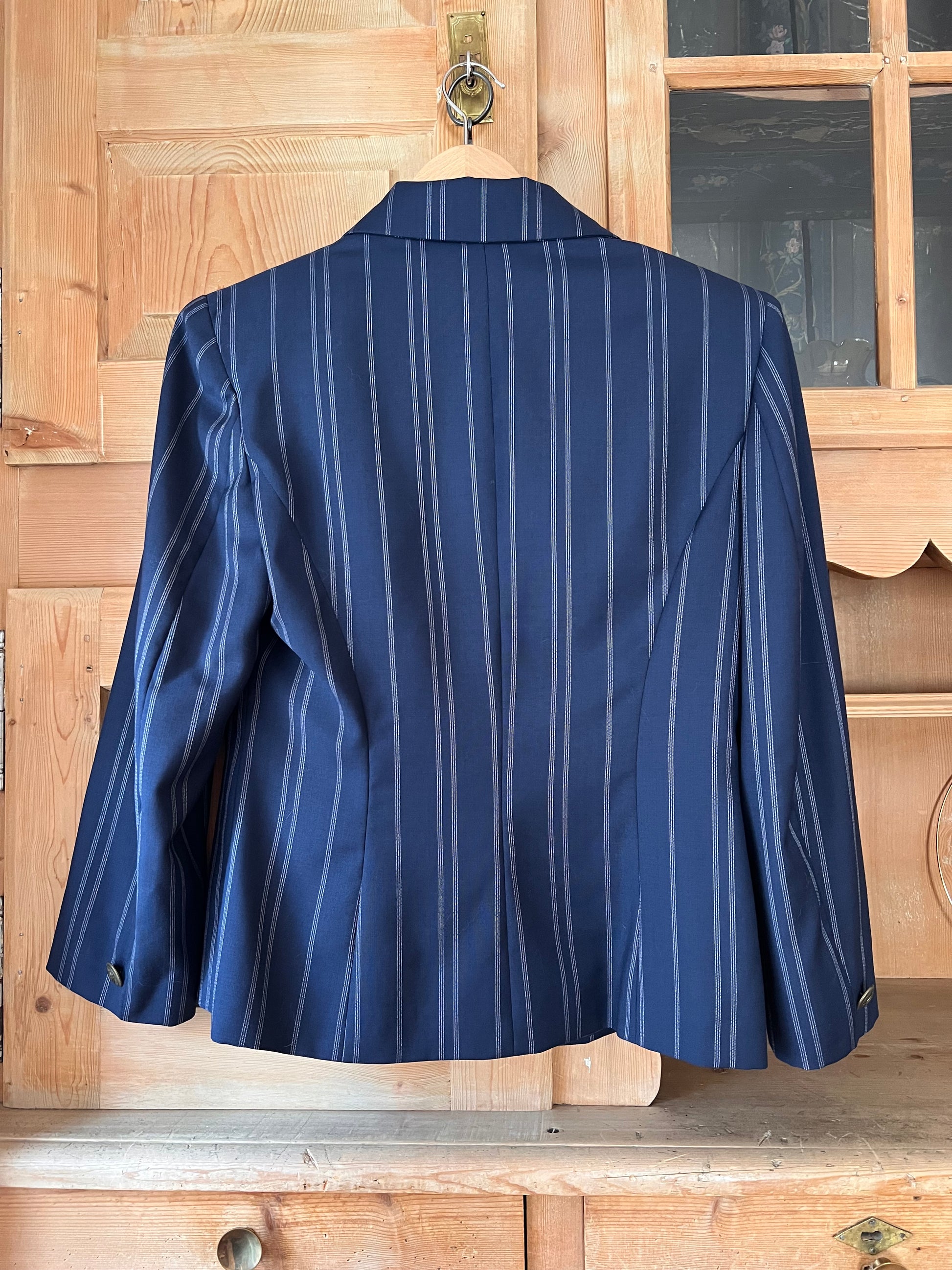 Gattinoni Tempo wool blazer in stunning navy blue. Features shoulder pads and front pocket (still sewn in). The brand that emphasizes Italian craftsmanship.