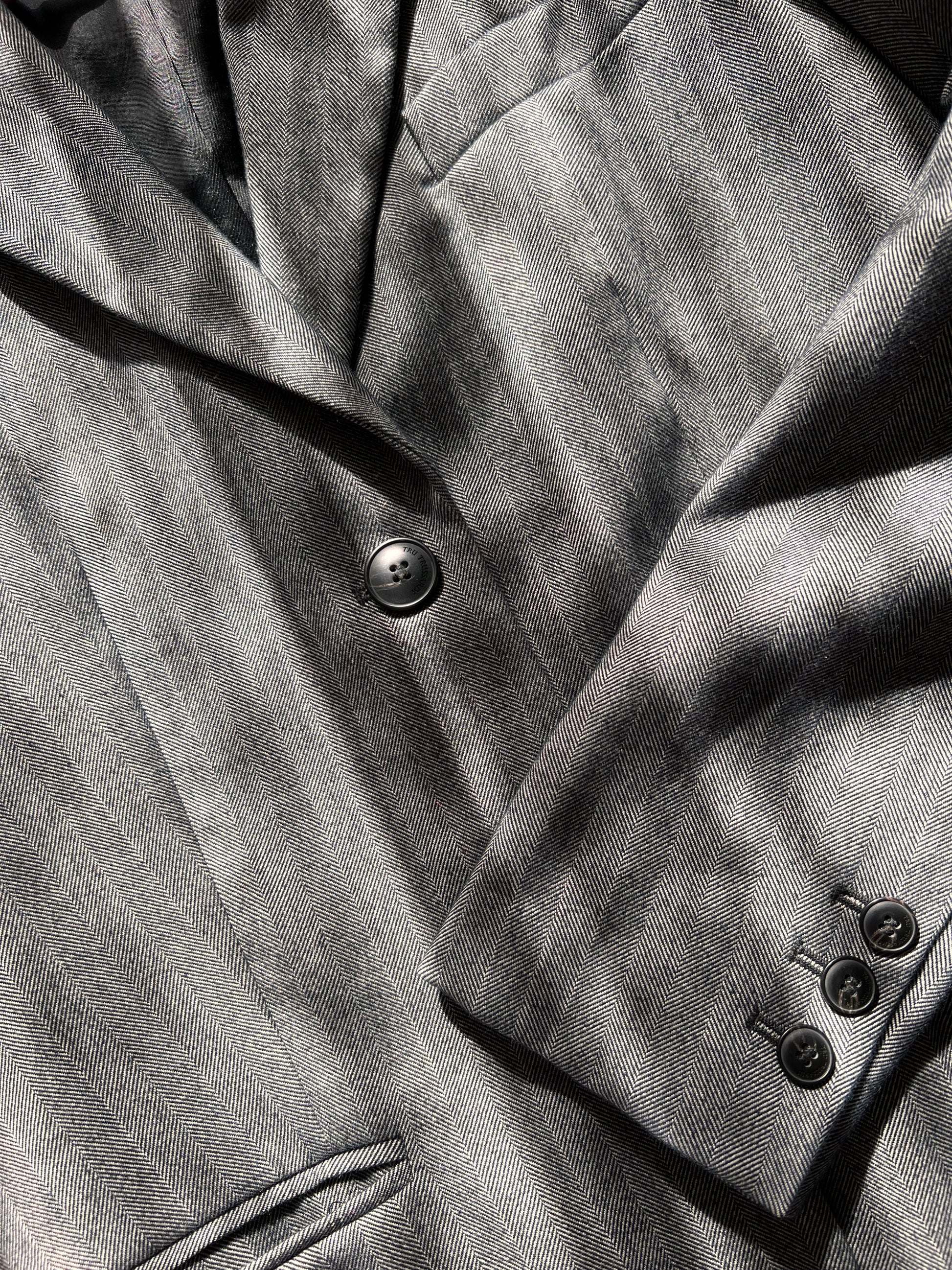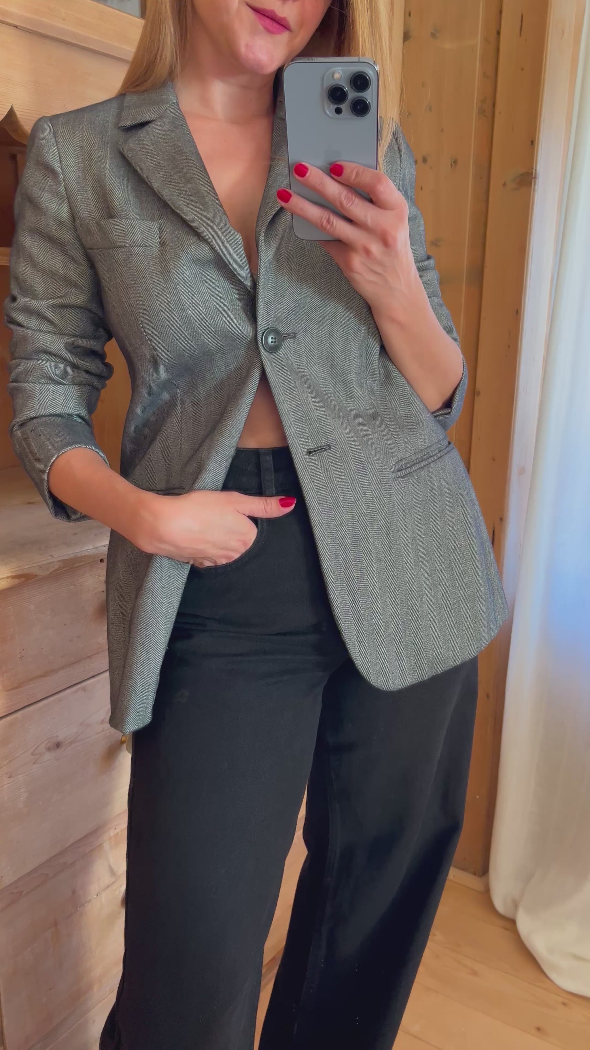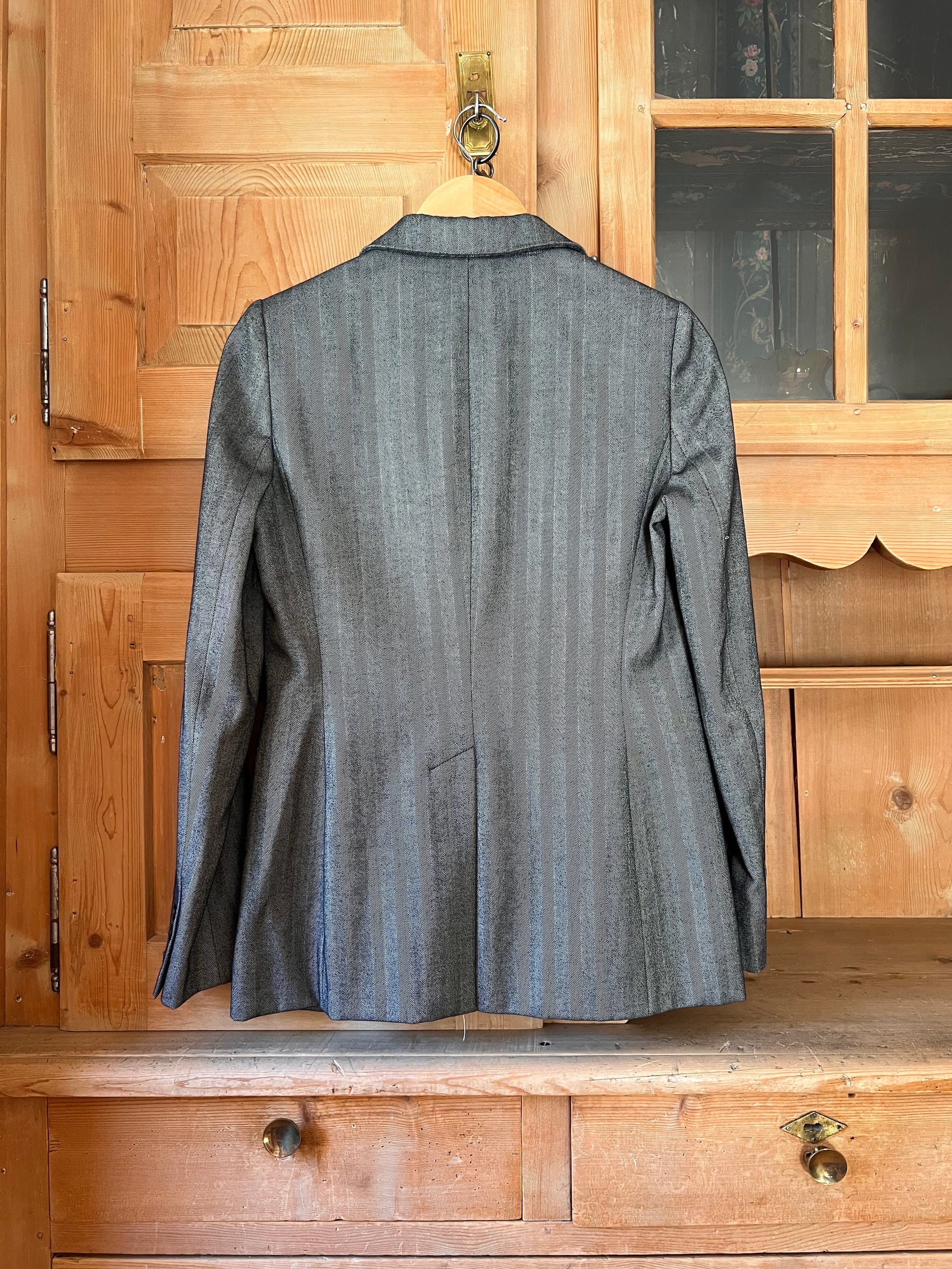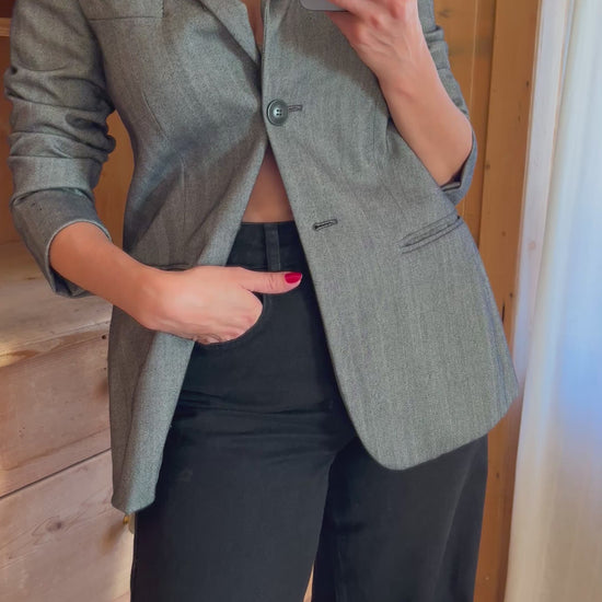 Trussardi wool blazer in timeless pattern. Features subtle shoulder pads and front pockets.