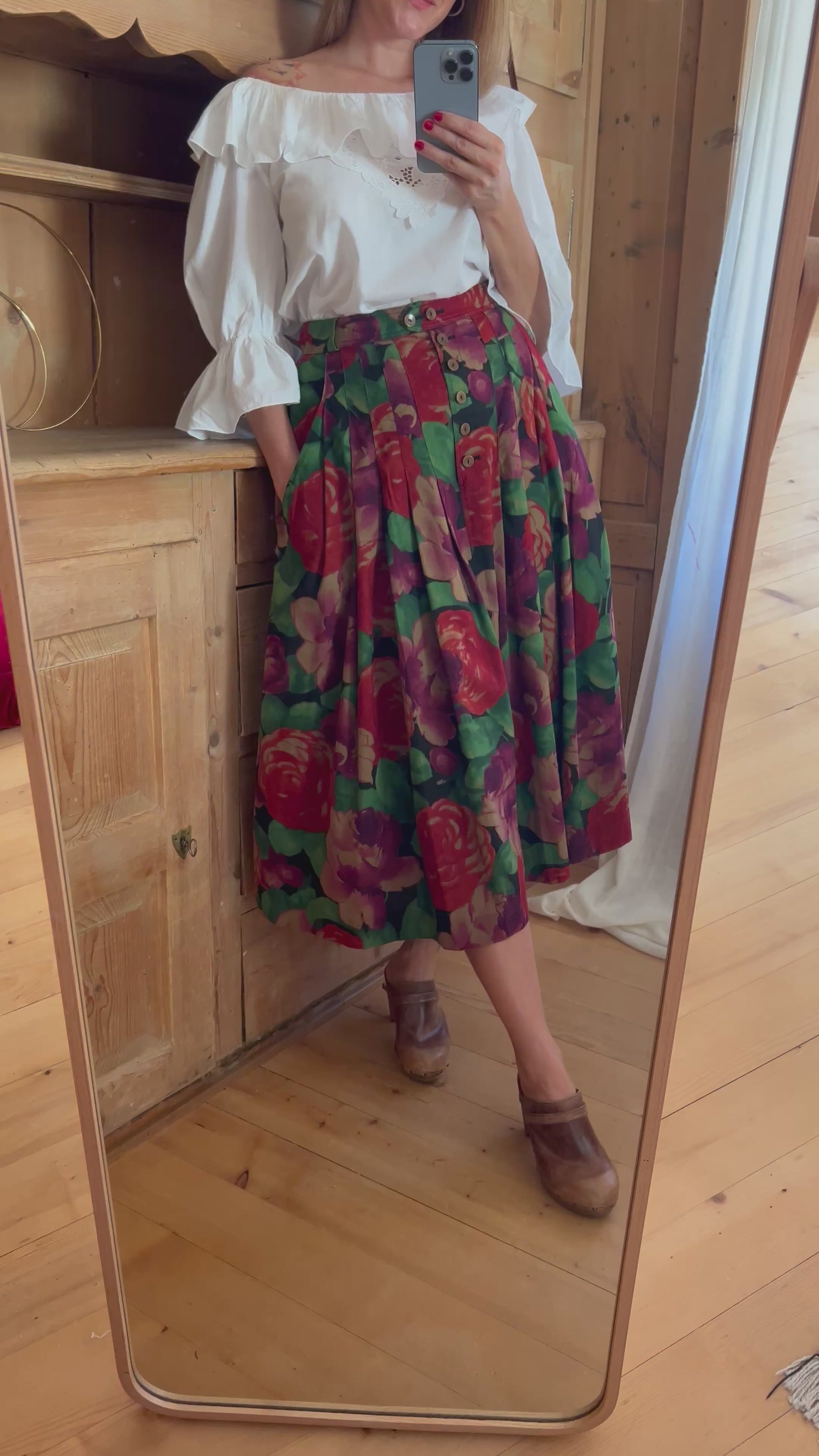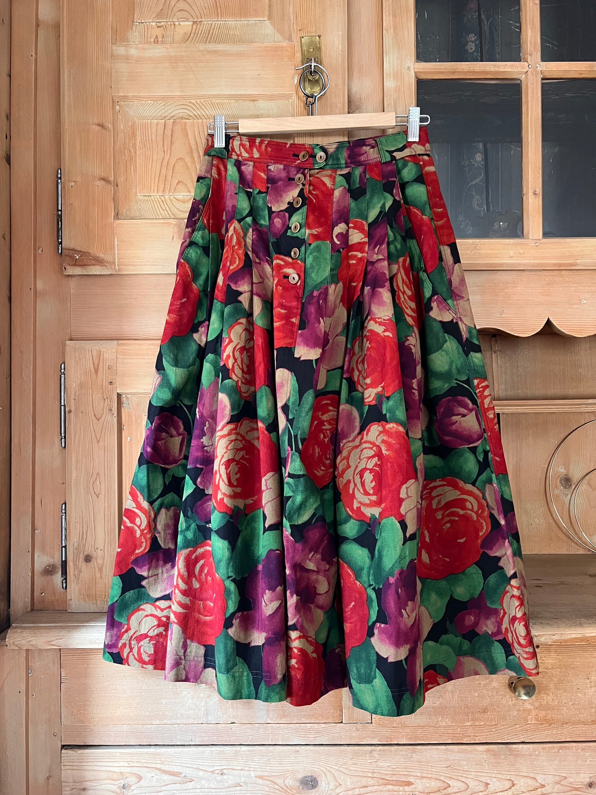 Bogner cotton midi skirt with gorgeous pattern, two side pockets and button closure at the front.