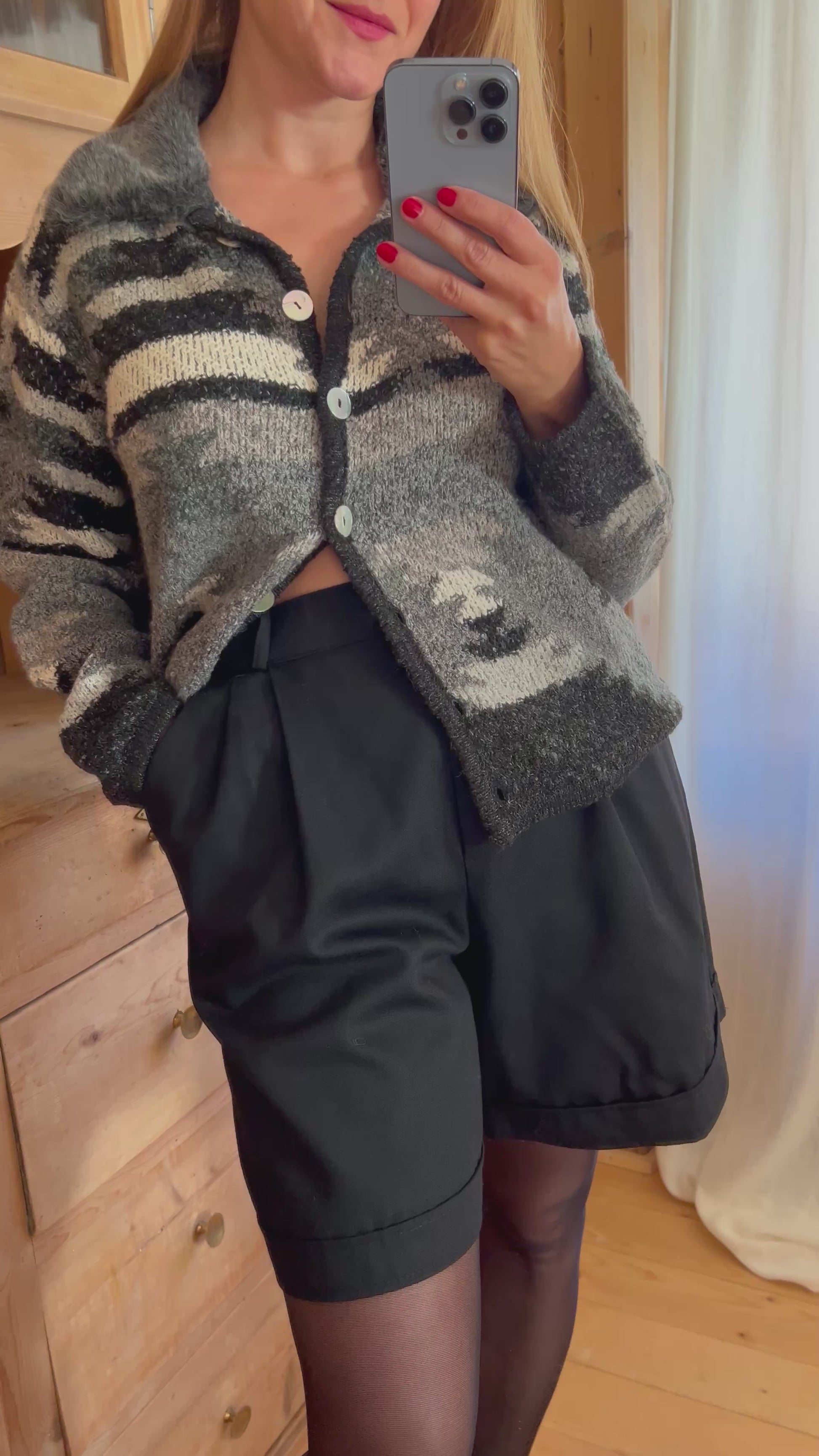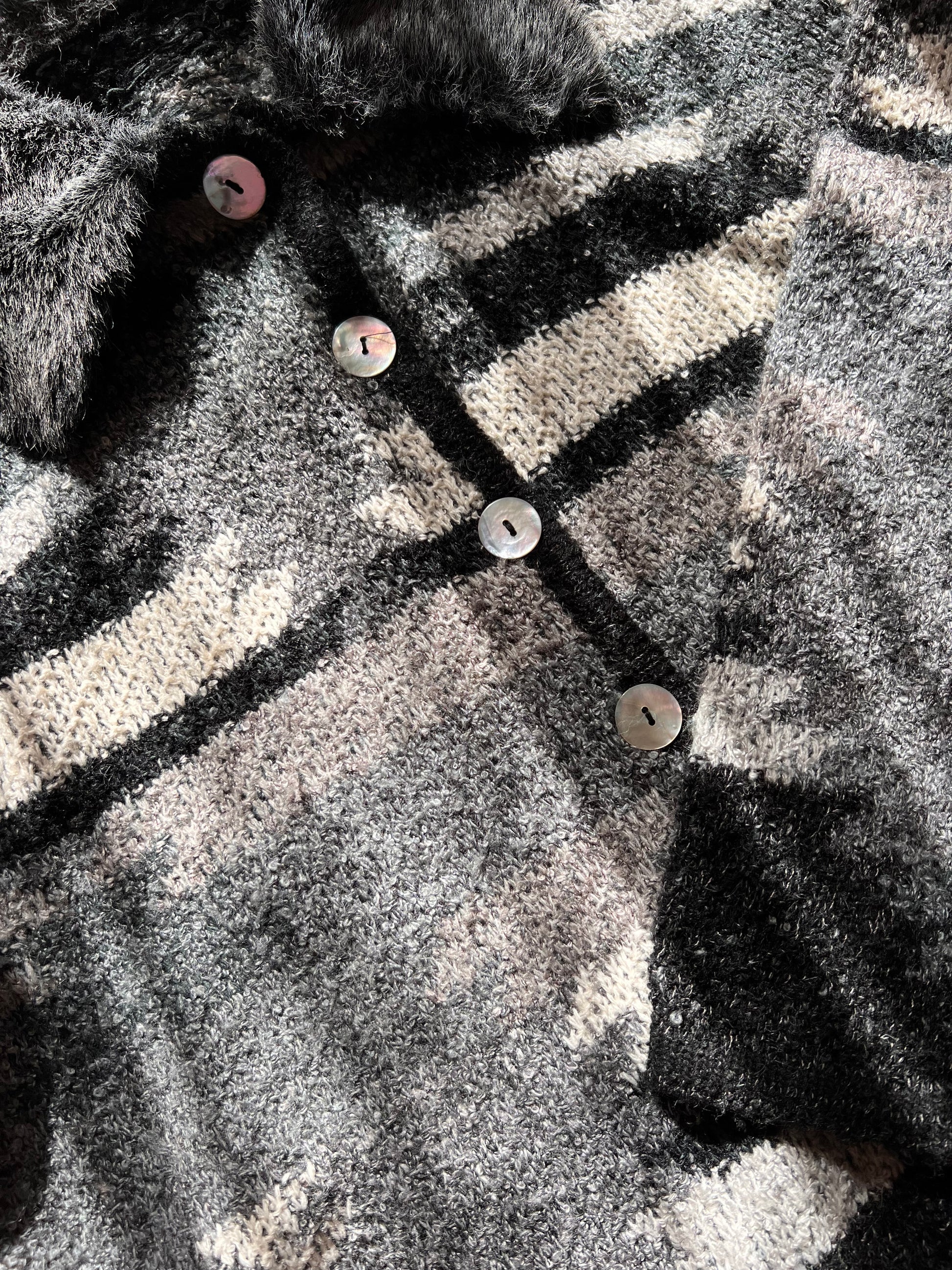 Vintage cardigan. It features faux fur collar and mother of pearl buttons.