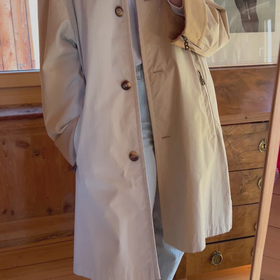 Bogner beige trench coat with exceptional attention to detail. Designed with two front pockets, a relaxed silhouette, and a luxurious wool lining.